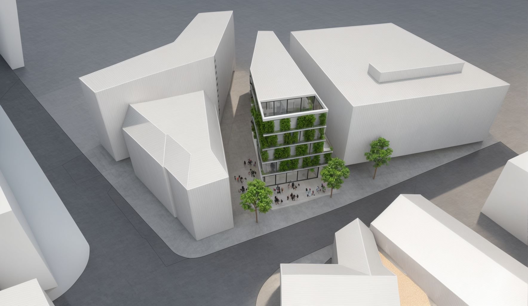 Im Herzen von Dornbirn entsteht auf einem schmalen Grundstück ein Bürogebäude, das die Fläche optimal nutzt. Die grüne Fassade unterstützt eine natürliche Temperaturregulierung und verleiht dem Bau Lebendigkeit. Ein Café im Erdgeschoss schafft einen einladenden Treffpunkt für die Umgebung.